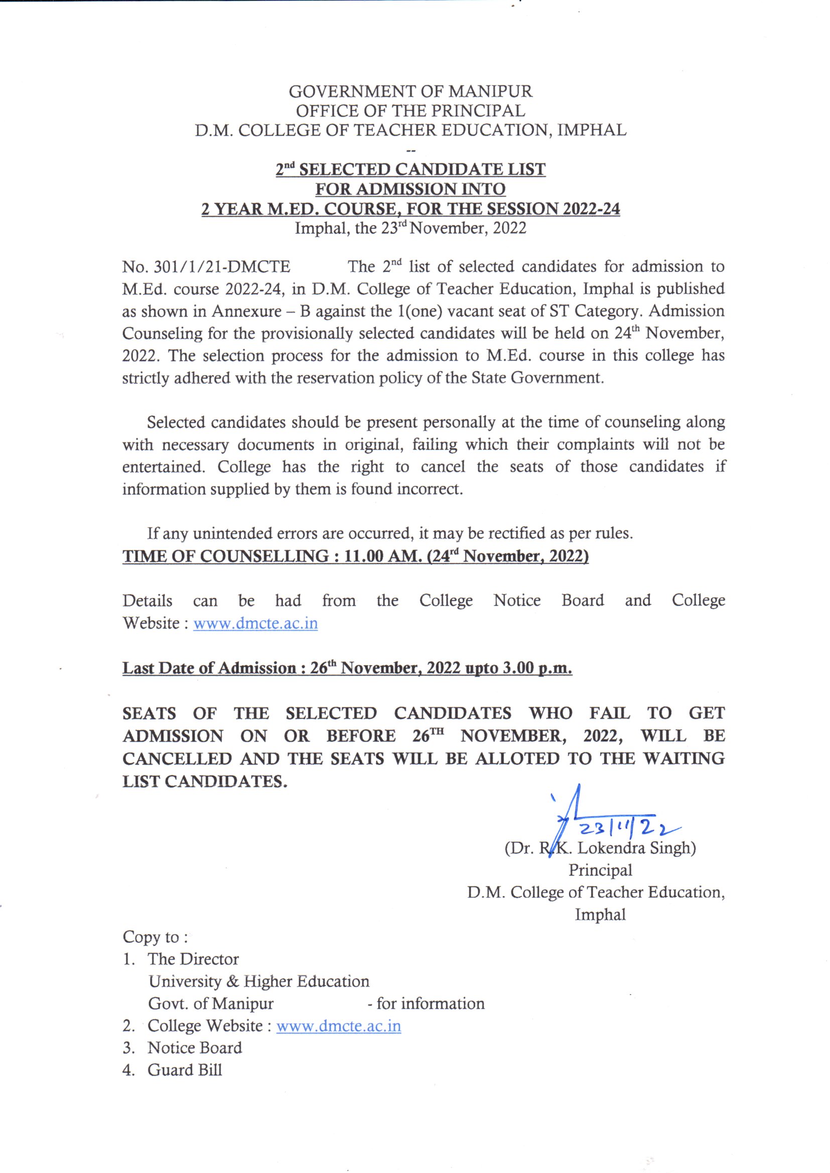 » 2ND SELECTED LIST FOR ADMISSION TO M.ED. COURSE 2022-24, RESULT DECALRED