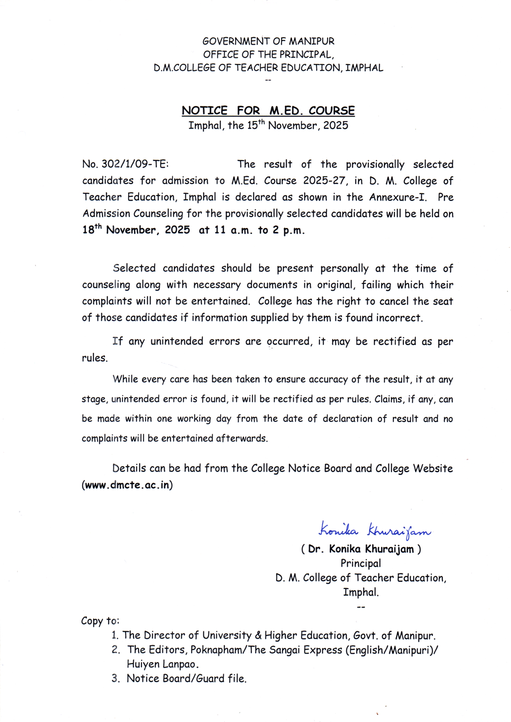 » M.ED. ENTRANCE TEST, 2025: RESULT DECLARED